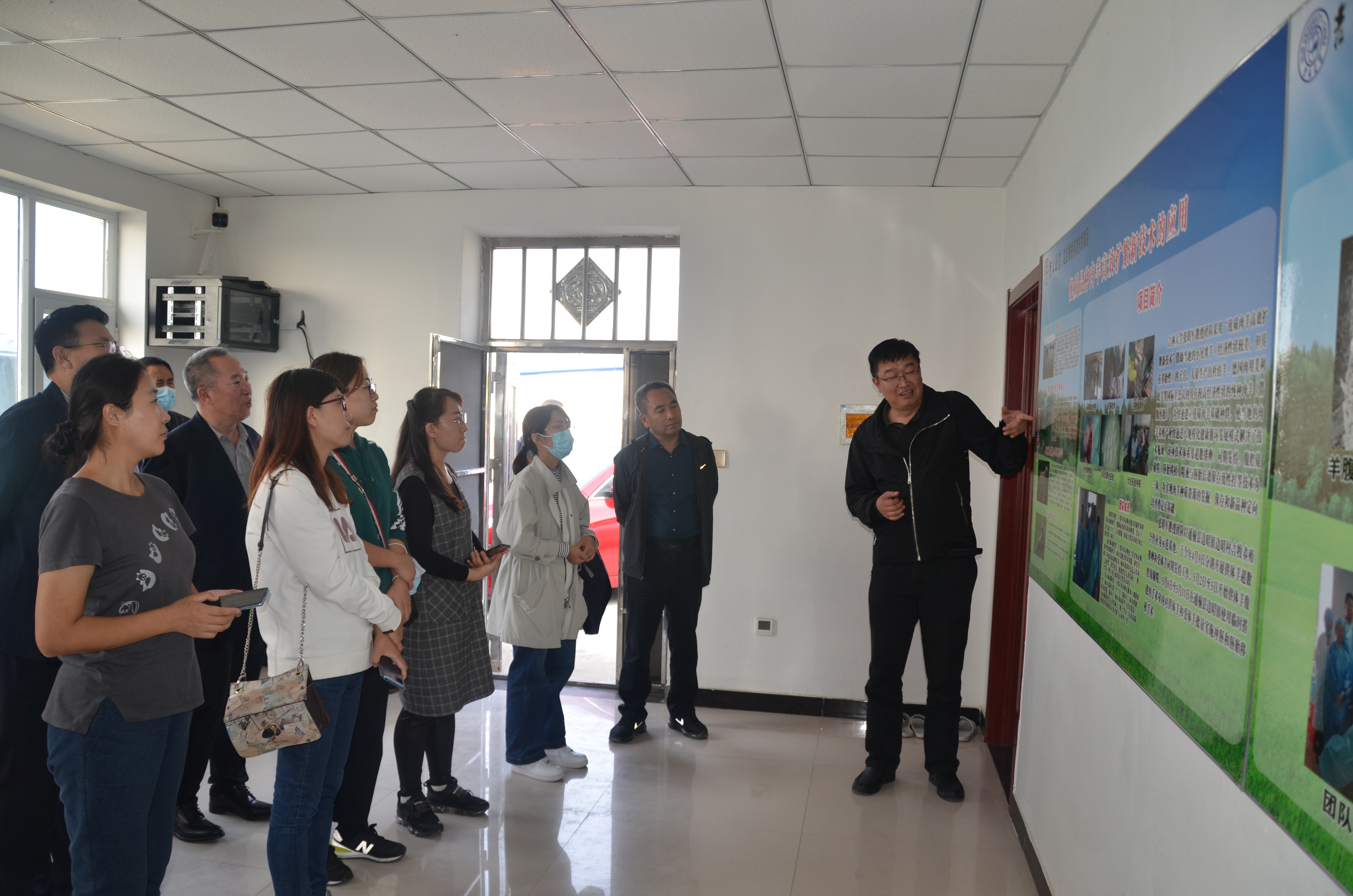 在边昭村第一书记王野和公司张明军教授的带领下,参观团队来到了“牧业小区”。张明军教授的“优质品种肉羊高效扩繁新技术”和王鹏副教授的“粗饲料发酵加工技术”在这里得到了广泛的应用,张教授借助当地多胎性好的小尾寒羊,大量生产出杜泊羊、美利奴等国际上公认的具有较高经济性状的纯种肉羊,与当地寒羊杂交,生产抗病性强、耐粗饲和肉质好的二元杂交羊,解决了当地肉羊养殖业快速规模化发展的技术瓶颈。王鹏副教授利用发酵技术将当地玉米秸秆和非粮饲料源等加工副产品转化为草食动物粗饲料,也为农户和企业带来了附加效益。