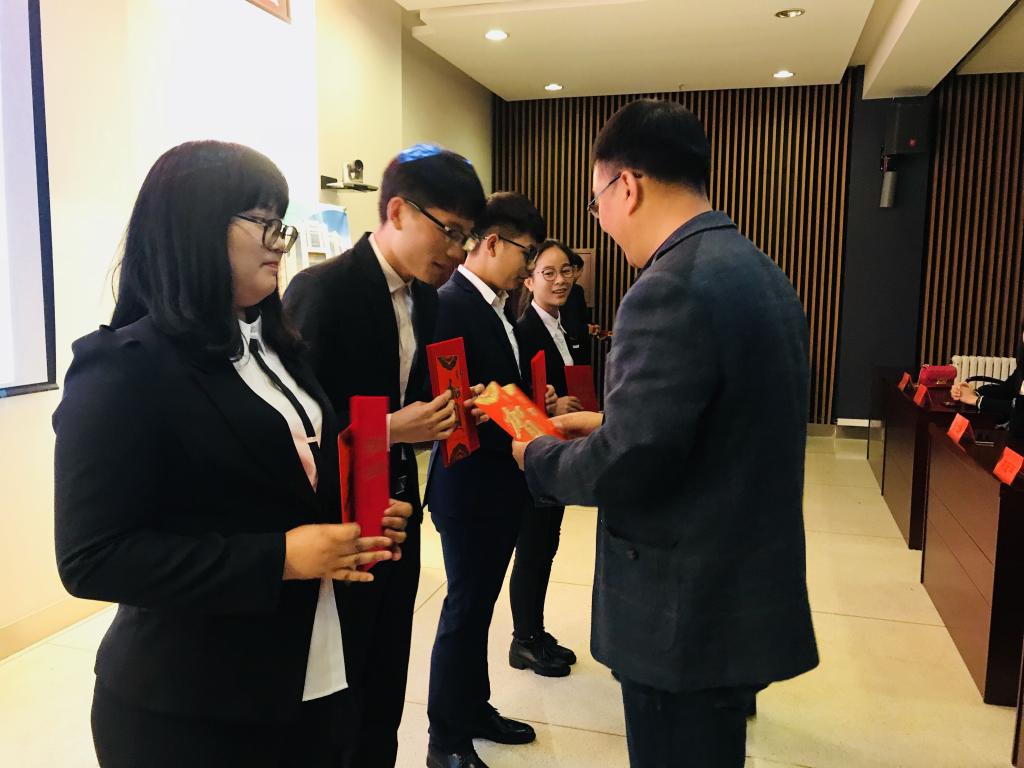 首先,动物医学公司党委副书记饶家辉老师致欢迎辞,他对禾丰牧业的到来表示热烈欢迎,对禾丰牧业近年来高速发展表示赞赏,并对禾丰牧业金卫东董事长个人出资捐助有困难的吉大学子的举动表示了深深的感谢。随后辽宁农牧总经理远继涛先生宣读了获奖名单,对获奖的四位同学表示了祝贺,并邀请来自禾丰牧业的陈光先生和刘延年先生为获奖员工颁奖。EMC易倍李金泽、赵丁,动物医学公司刘妍丹、惠少杰四位获奖员工分别发表了获奖感言,一致表示定不会辜负禾丰牧业的期望,努力奋斗并成为对社会有贡献之人。
