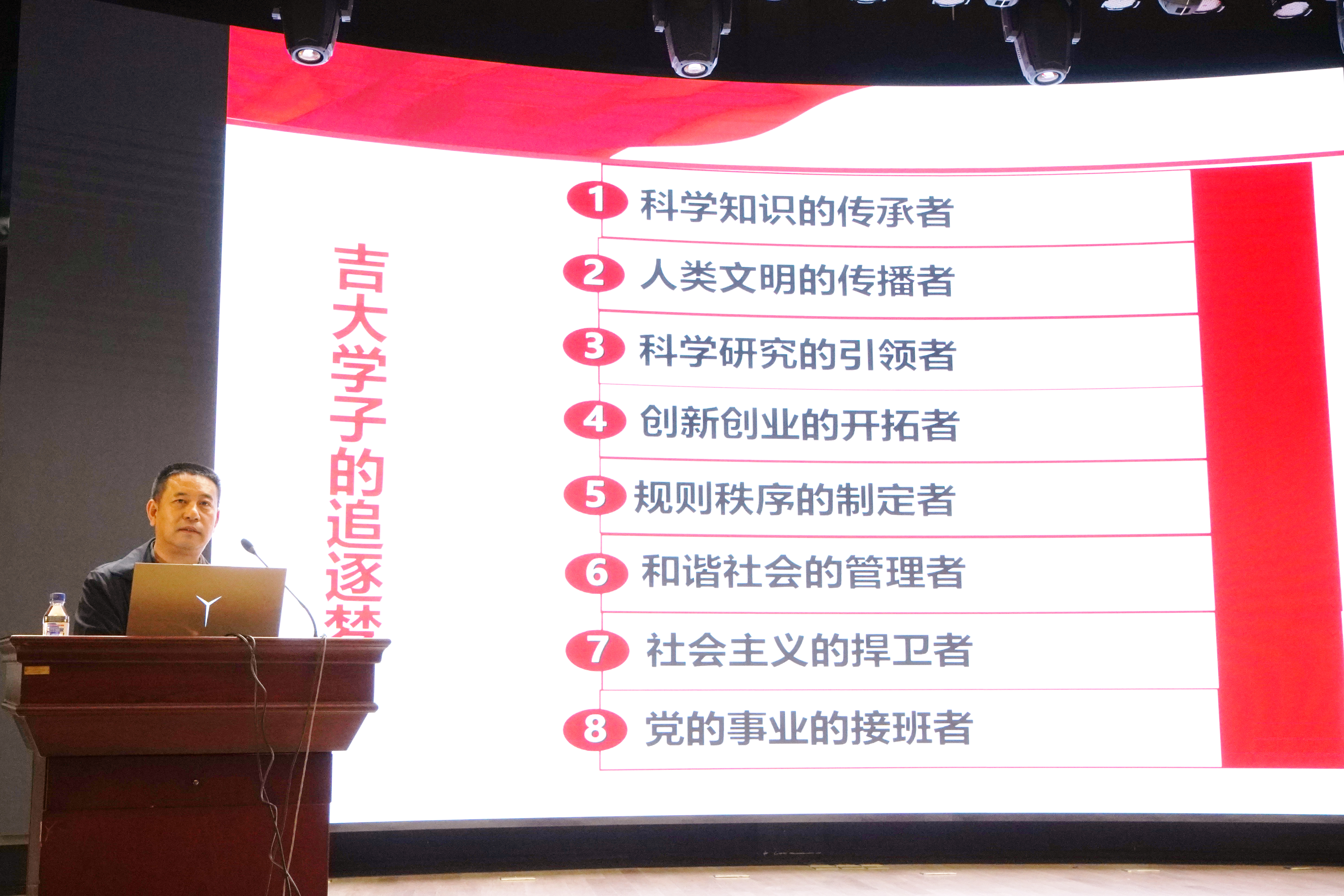 最后,高福和对全体同学提出殷切希望。他将吉大学子的追逐梦凝练为八句话,希望同学们在未来的学习中,要做科学知识的传承者、人类文明的传播者、科学研究的引领者、创新创业的开拓者、规则秩序的制定者、和谐社会的管理者、社会主义的捍卫者、党的事业的接班者。