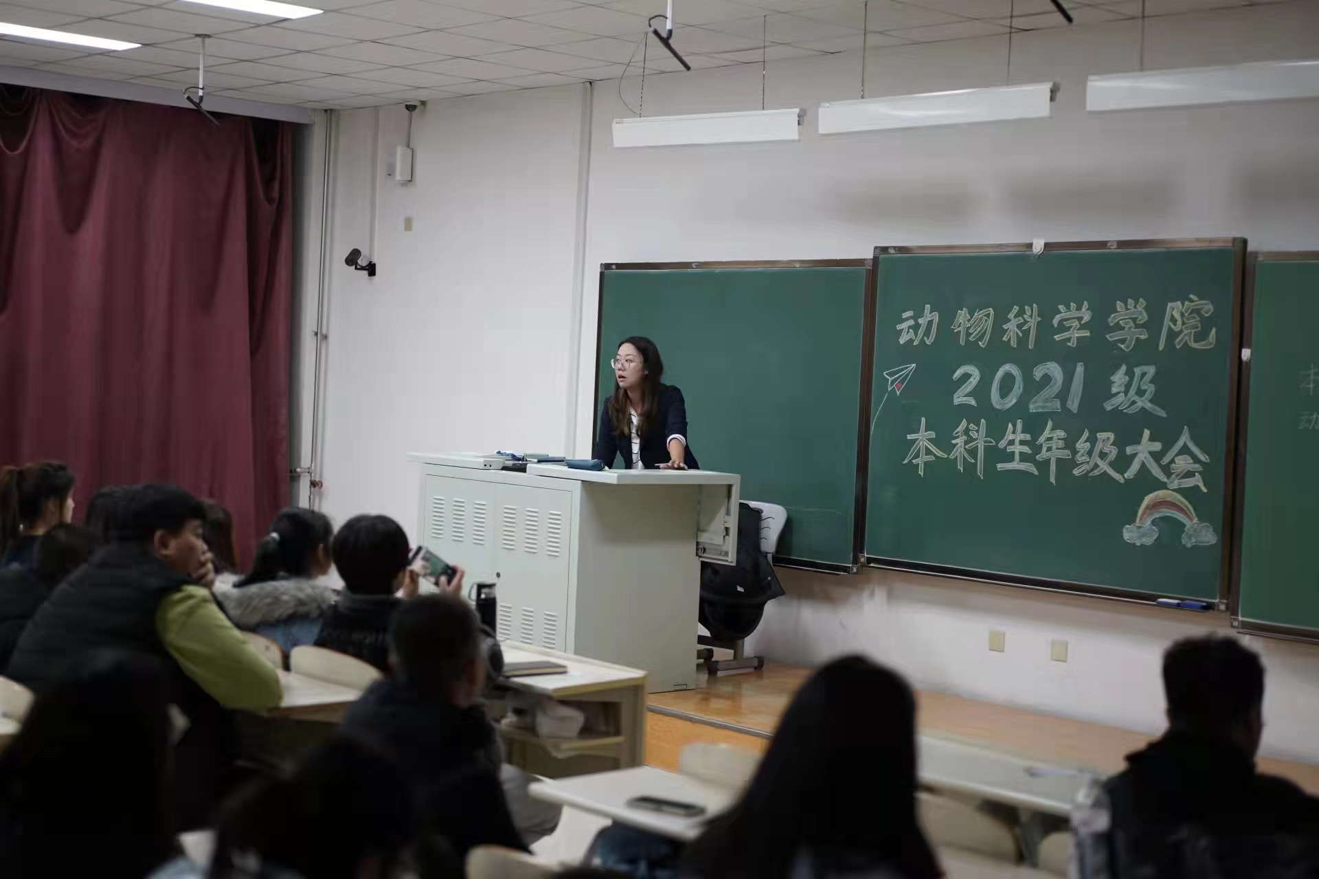 2021年11月20日18:00,EMC易倍2021级本科生年级大会在中心校区李四光教学楼210教室召开。会议由2021级辅导员王可佳主持,全体2021级本科生参会。
