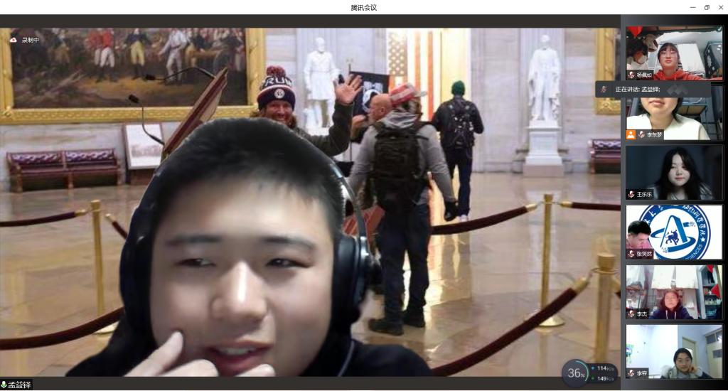 接下来,辅导员尹暄齐组织同学一同观看了身边人战“疫”故事短片,片中为我们展现了日常生活保障的志愿者、后勤工作者的风貌,增强了同学们共同抗疫、众志成城的决心。同学们也分享了隔离以来自己做志愿者的经历。从一开始的短暂慌乱,到克服过程中的各种困难,再到听到一声声“谢谢”的成就感、幸福感,孟益铎同学说,这是“甜蜜的”,孙艺嘉同学说,这是“温暖的”,李东梦、李杰同学说,这是“感动的”。此外,同学们提出隔离时期学习、生活上的困难和问题,辅导员尹暄齐表示,一定会沟通各方,尽力解决,同时也鼓励同学们克服困难,共度时艰。