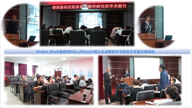 在报告中,Steffen Maak教授详细介绍了德国莱布尼茨家畜生物学研究所的六个研究部门及其研究方向,其中六个部门包括:肌肉发育生物学部门、遗传学和生物统计学部门、家畜基因组生物学部门、生殖生物学部门、动物营养和生理部门及动物行为与生理部门。此外,Maak教授还对该研究所拥有的研究动物遗传资源进行了介绍,如,经长期选育用于解析遗传机制的快慢速生长小鼠系、高繁殖力小鼠系或持久运动力家系小鼠,用于研究牛肉品质或奶品质的杂交F2群体及用于研究动物行为认知的侏儒羊等资源群体。