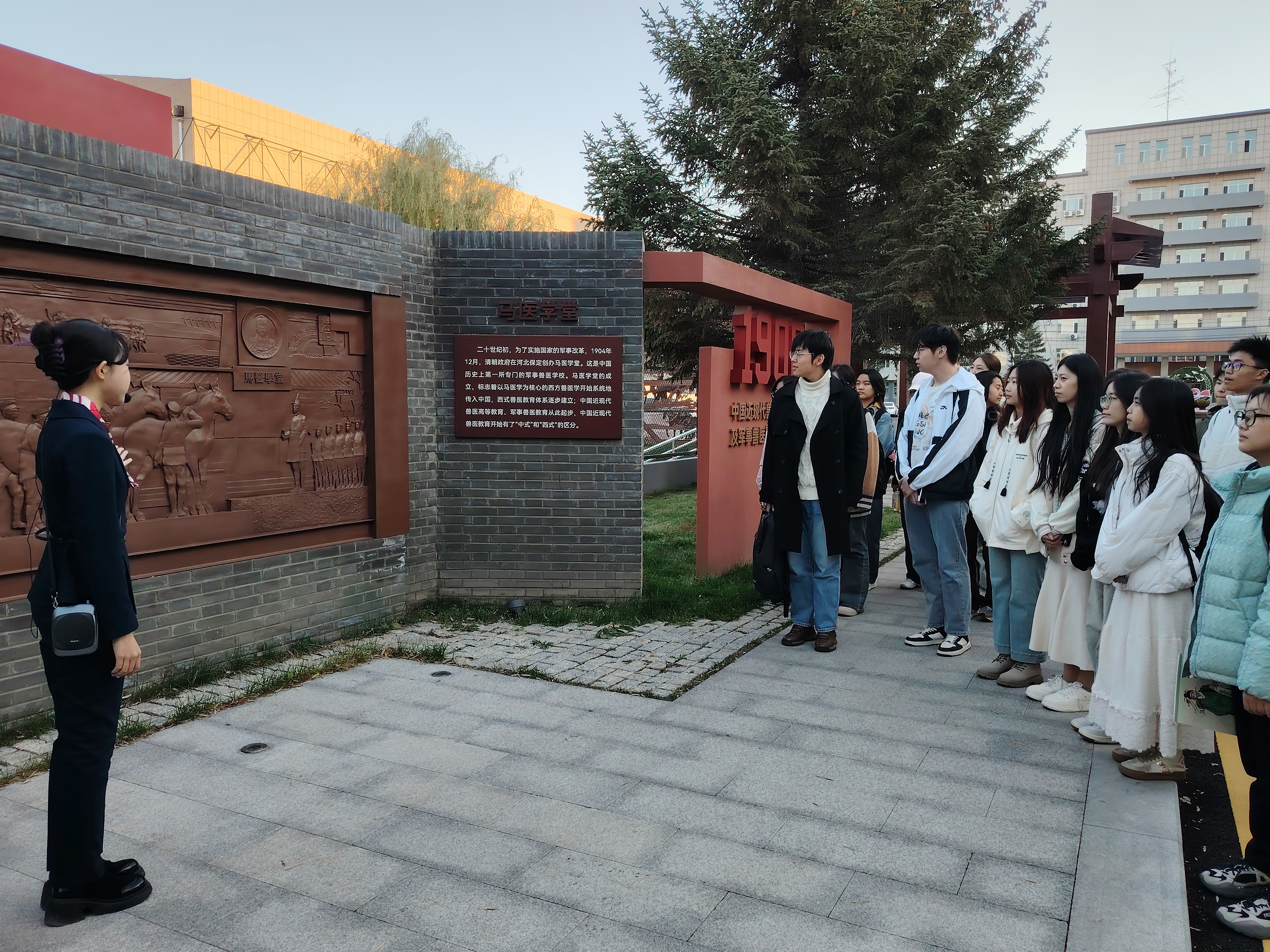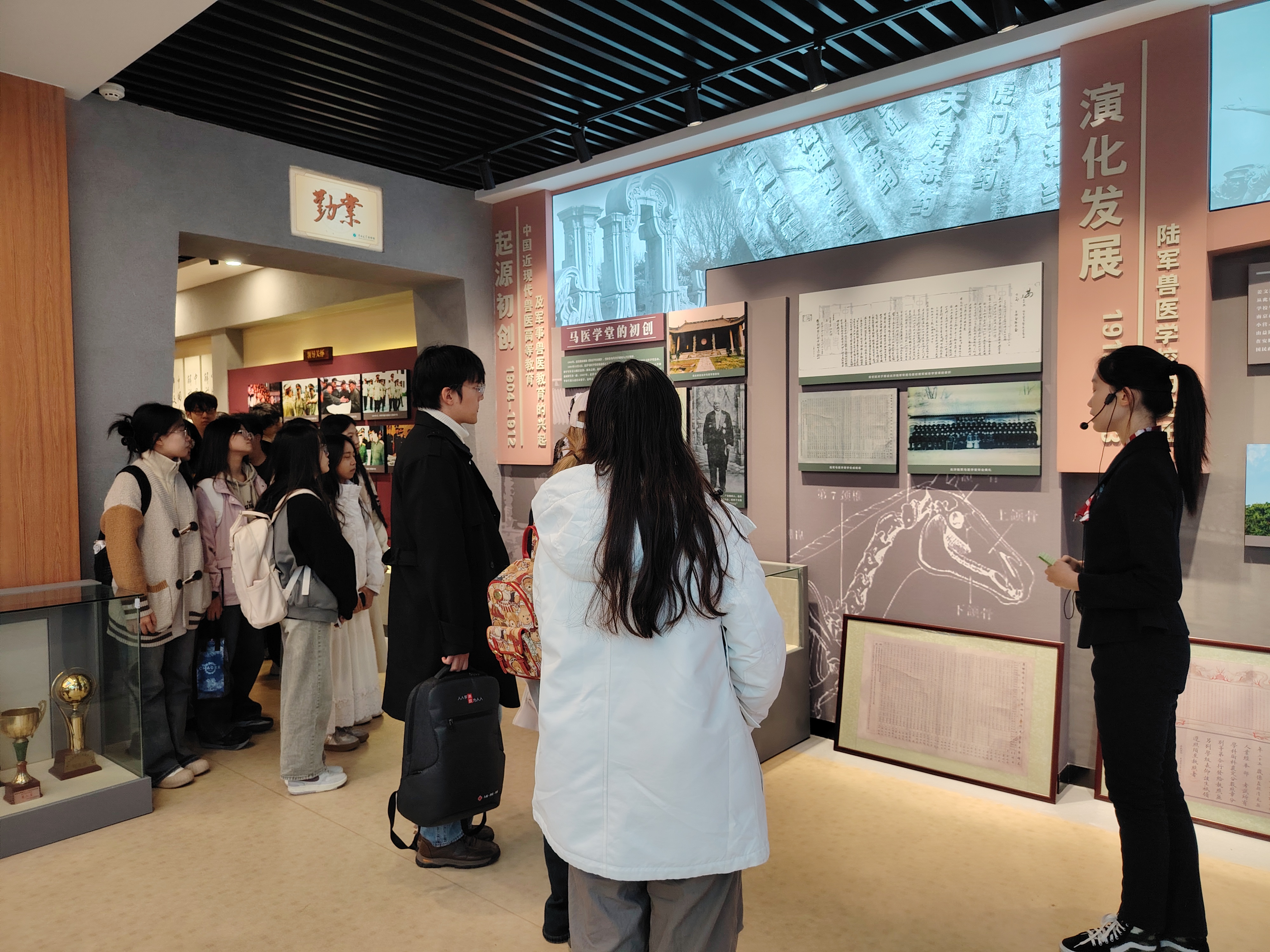 随后,同学们参观了历史文化长廊。长廊以时间为序,展示了从近现代兽医教育及军事兽医教育的兴起、创建、形成、发展到融入国民高等教育的全过程。文字、图片和雕塑的详实呈现,使同学们仿佛置身于那个充满奋斗的峥嵘岁月更加直观地了解了公司的历史发展和杰出贡献。