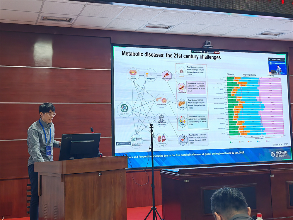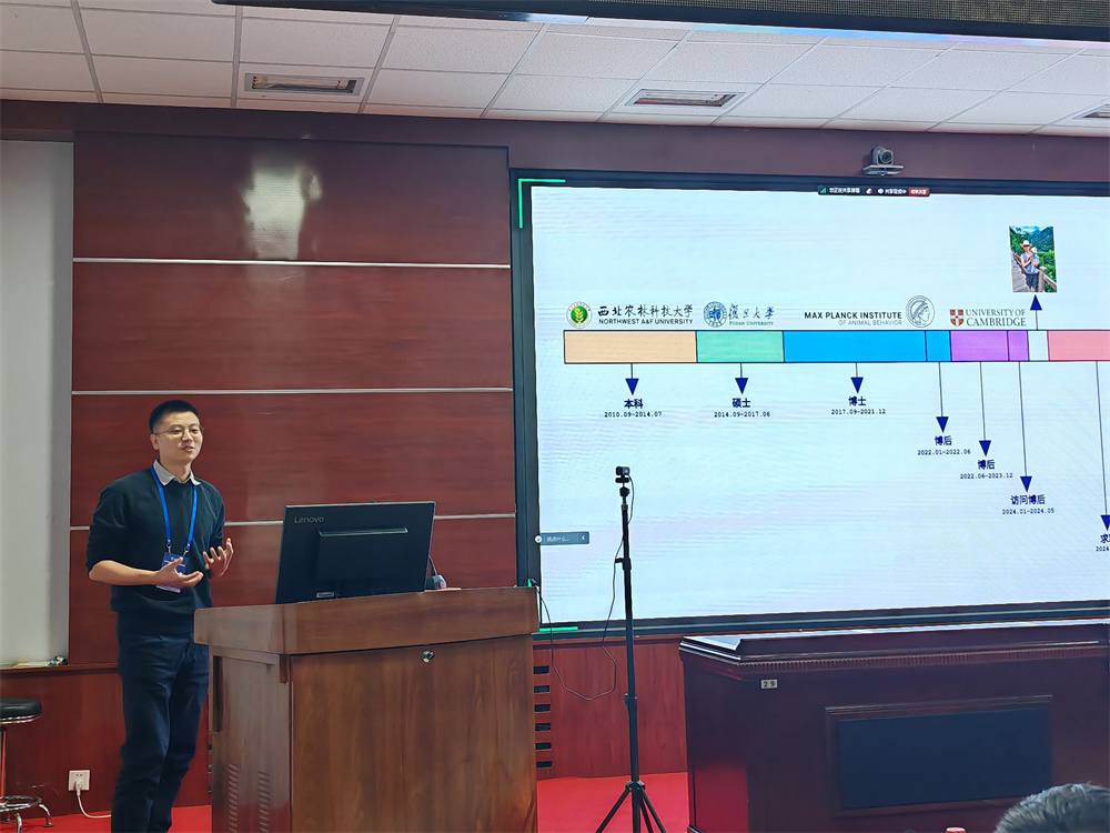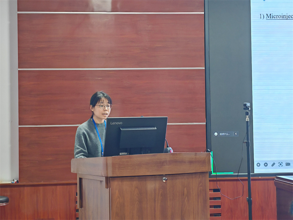 随后,6位青年学者依次作专题报告。来自澳大利亚莫纳什大学的武玉钦博士以《胰高血糖素的代谢调控作用》为题,介绍了胰高血糖素新靶点SEC22B及其在胰高血糖素调控过程中的关键作用。日本德岛大学的林青怡博士以《基于新型转染方法的猪胚胎基因编辑技术开发》为题,分享了转染技术可以实现对猪胚胎进行基因编辑。在《亲缘关系动态及其社会生活史的进化意义》中,英国剑桥大学的何鹏博士以虎鲸和人类为对象,介绍了个体间亲缘关系如何改变社会结构,进而影响地区生态。加拿大戴尔豪斯大学的胡国煜博士、比利时列日大学的陈焱森博士、英国苏格兰农业大学的李冰洁博士分别以《美国水貂抗阿留申病能力的基因组分析》、《高氮利用效率和低碳排放奶牛的遗传育种》和《英国动物遗传育种的研究和应用(2024)》为题,对美国水貂和奶牛复杂性状的解析,关键位点的挖掘和产业化应用进行了介绍。交流期间,公司师生积极提问,青年学者逐一进行回答。