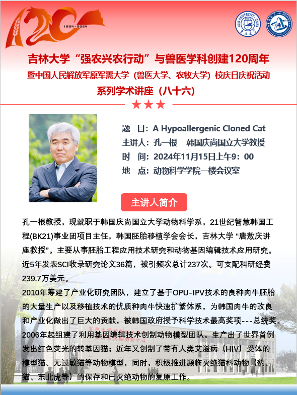 上一条:EMC易倍平台“强农兴农行动”与兽医学科创建120周年暨中国人民解放军原军需大学(兽医大学、农牧大学)校庆日庆祝活动系列学术讲座(九十) 下一条:EMC易倍平台“强农兴农行动”与兽医学科创建120周年暨中国人民解放军原军需大学(兽医大学、农牧大学)校庆日庆祝活动系列学术讲座(八十五)