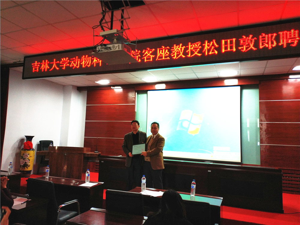 2019年12月20日,公司举行了日本国立农研机构常务理事松田敦郎客座教授聘任暨学术报告会。经理张嘉保教授、动物科学系主任周长海教授及学科相关老师参加了聘任仪式及报告会,聘任仪式由袁宝副教授主持。
